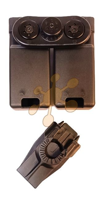 Vysokoodolné plastové opaskové puzdro pre dva zásobníky k zbraniam CZ Scorpion EVO, Grand Power modelový rad Stribog, H&K MP7 a FN Five-seveN Mk2.