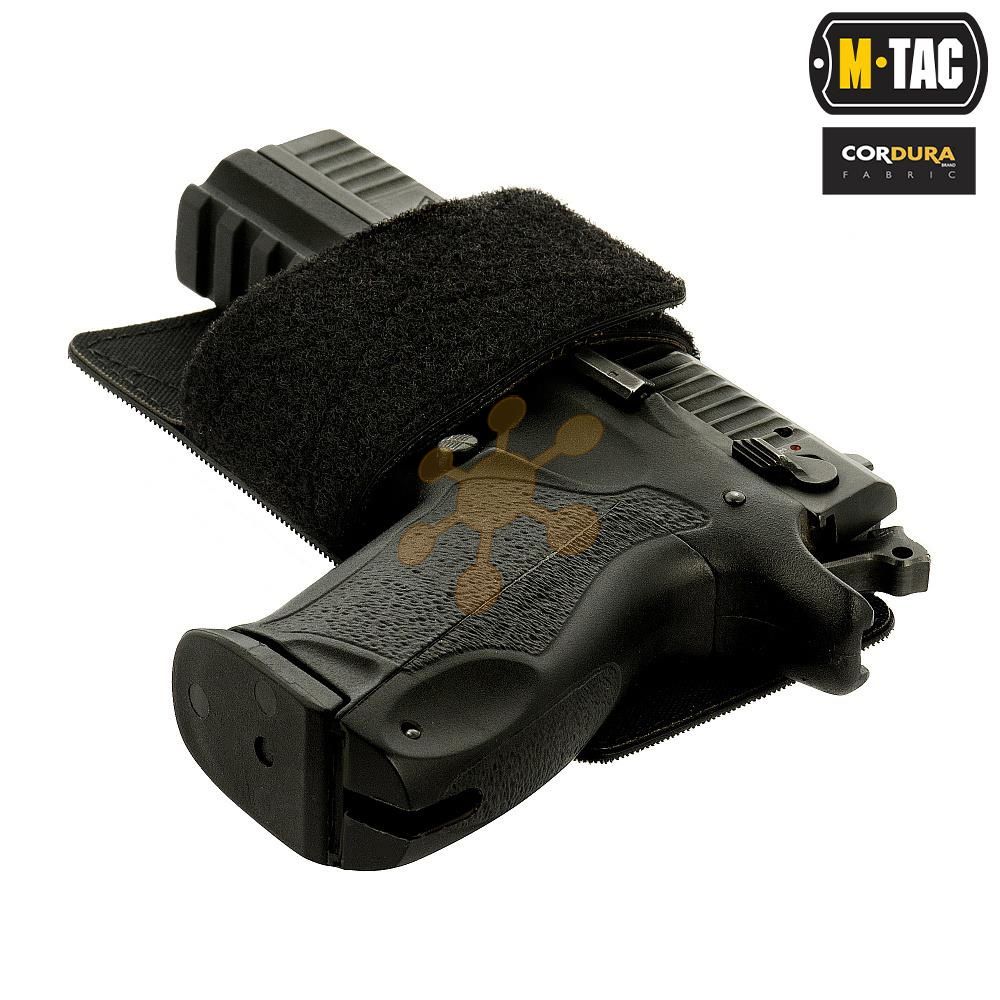 Univerzálne puzdro / držiak na zbraň, ktoré sa umiestni do tašky na nosenie zbrane. Pripevnenie pomocou suchého zipsu. Vhodné pre väčšinu typov pištolí.