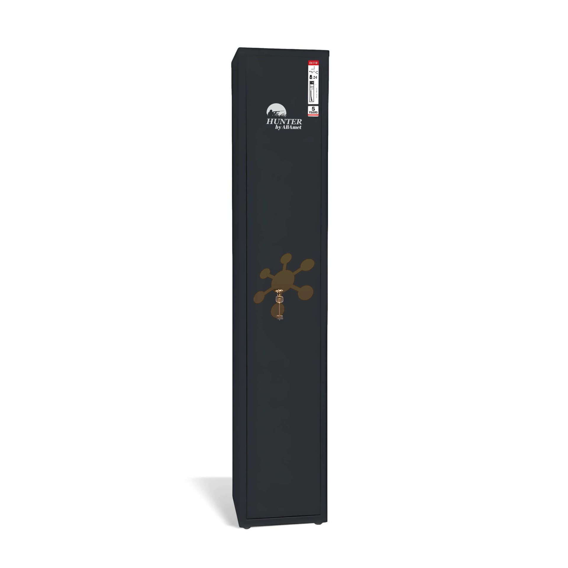 Vo vnútri tejto skrine nájdete uzamykateľnú skrinku s poličkou a držiaky na dverách. Do tohto trezoru sa zmestia 4 zbrane s maximálnou dĺžkou pušky 1260 mm. Uzamknete ju kľúčovým zámkom.