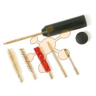 Čistiaca sada obsahujúca 3 kartáče a očko na handričku. Všetky časti sa dajú vložiť do rukoväte - plastového puzdra. Kaliber 9mm/.38/.357