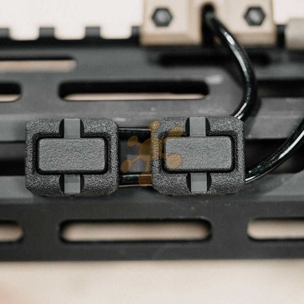 Sada 6 kusov organizérov, ktoré je možné umiestniť do predpažbia pušky a po ich inštalácii si môžete usporiadať kabeláž príslušenstva zbrane. Zostavy sú kompatibilné s predpažbiami série M-LOK, pričom ich otvory umožňujú vedenie štandardných káblov používaných v zariadeniach, ako sú laserové indikátory cieľa, baterky alebo iné mieridlá. Sú vyrobené z ľahkého polyméru, takže nebudú narúšať rozloženie hmotnosti zbrane.