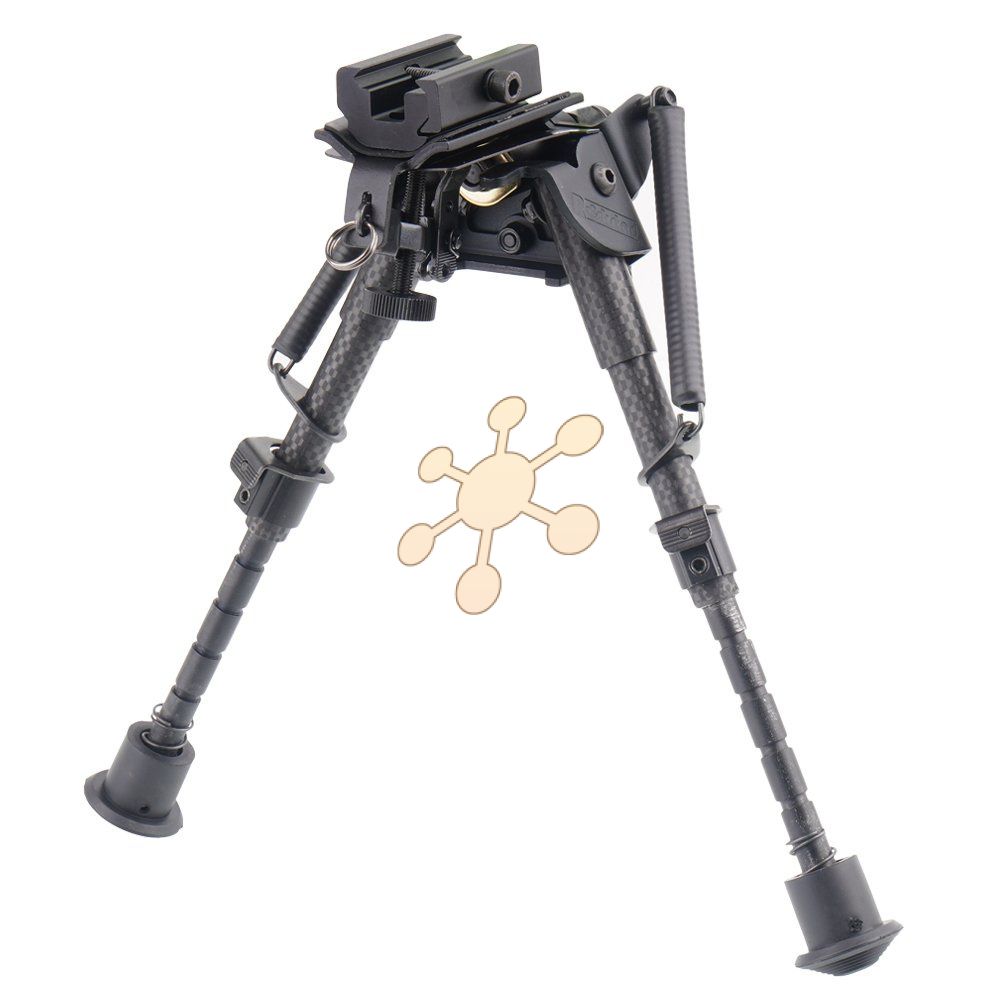 Nastaviteľná dvojnožka so zabudovaným otočným čapom. Rozsah od 6" do 9". Gumové pätky zaisťujú stabilitu, podložky na držiaku zabraňujú poškriabaniu povrchu zbrane. Montáž Picatinny alebo Harris.