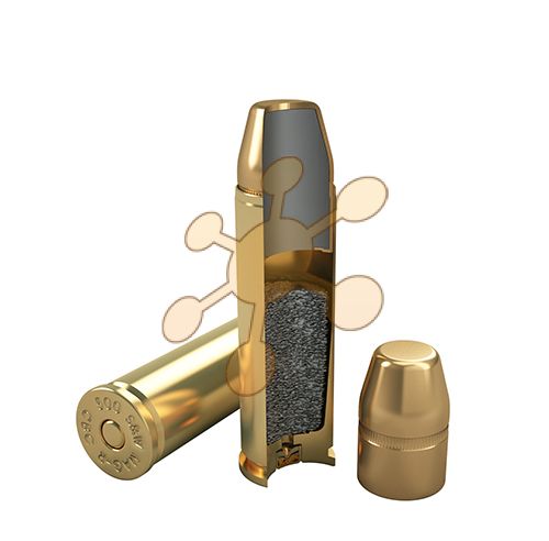 Celoplášťové strelivo 500 S&W Magtech. Váha strely 325 grs. Rýchlosť strely 550 m/s. Energia 3186 J.