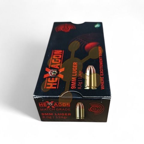 Strela HEXAGON, vytvorená podľa vzoru striel HP pre absolútnu presnosť. Dlhá valcová časť strely poskytuje lepšie vedenie v hlavni. Výhodný aerodynamický tvar a stabilizačné drážky prispievajú k vysokej presnosti tohto streliva.